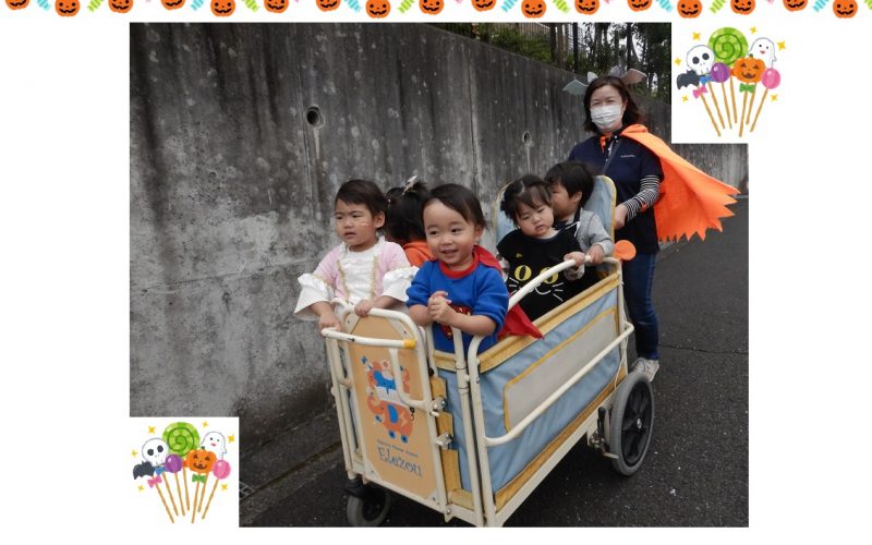 今日は一日Halloween Party!!先生たちも仮装して トリックオアトリート!! 子どもたちも仮装して外にお出かけします♪ もちろんお楽しみのおやつもありましたよ♪