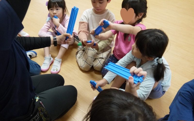 昨年度はカスタッチフェア~スポーツ~で保護者の皆様にも運動を楽しんでいただきましたが、今年度は6/3(土)に親子で運動を楽しめる行事を開催します。スポーツチャレンジ!! あさひ組(年長クラス)がチャレンジするものは。。。プラレールのレール?今日はチャレンジの第一日目、なぜレールを持っているのでしょう?正解…🏁の代わりにしているんです。これが、どのようになっていくか、続編は追ってお伝えしていきます。あとあと、レールを持った初日が懐かしくなるかもしれませんね(^_-)-☆