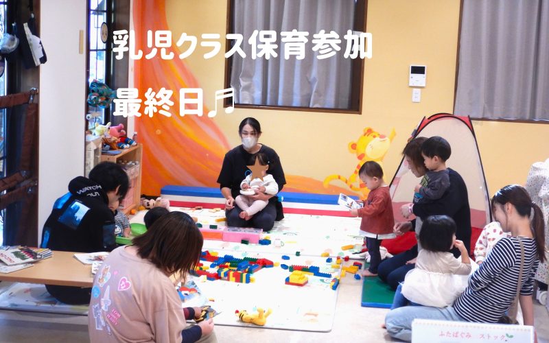保育参加、乳児クラス最終日です!今年度の全クラスの保育参加・参観、来てくださいました保護者の皆様、忙しい毎日の中スケジュールの調整等、ご協力ありがとうございました!子どもたちの保育園での姿はご家庭とは違ったところもあったのではないでしょうか?大きな成長を目の前で感じていただけたことと思います。保育園職員一同、保護者の皆様と子どもたちの成長の喜びを分かち合えたことを嬉しく思います★