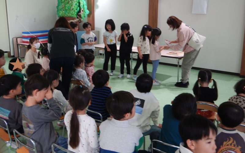 幼児ルームでは「げんきいっぱい!(健康集会)~手の洗い方【感染予防】の話~」を行いました。話をするのは看護師スタッフです。まずは、年長組に全員にあるクリームを手に塗ってもらいます。そして、いつものように手を石鹸で洗ってきてもらいます。さて、きれいに洗えているかな? 先ほど塗ったのは不思議なクリームで、ブラックライトで白く光るんです。では、手を洗った年長組の手をブラックライトにあててみましょう。。。!すると、洗ったはずのみんなの手は白く光るところがたくさん(゜o゜) 石鹸をつけて洗っても、しっかりと泡を立ててこすらないとばい菌もこうやって手に残っちゃうんです。この手であちこち触ったり、食べ物を食べたりしたら!?・・・ということを目で見て理解しました。2歳児以上のクラスがこの会に参加していました。子どもたちひとりひとりが自分の身体を感染から守る意識から手を洗う大切さを少しでも感じていて欲しいです。そして、いつも げんきいっぱい!で(^_-)-☆