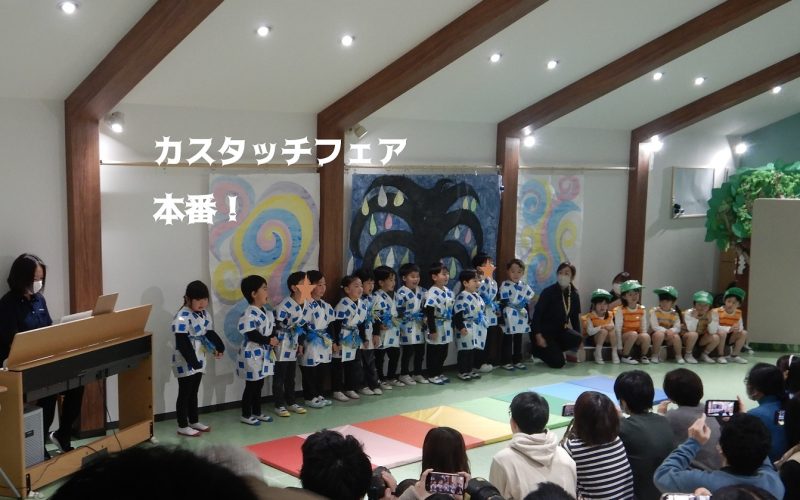 3~5歳児までの3クラスが合同で表現活動。絵本「めっきらもきらどおんどん」のストーリーをカスタッチ風にアレンジし、それぞれのクラスでパパやママやご家族に見せたいもの、やりたいことを劇に組み込みひとつのストーリーとして成立させ表現していこうという今年度のカスタッチフェア♪…大成功!!!!昨日までとは目の輝きも違う子どもたちの姿に職員一同感動☆子どもたちの秘めたる力にただただ「すごい!」の一言。昨日の公開リハーサルで度胸もつき、すべて自信にかわっていました。保護者の皆様と、子どもたちの成長を一緒に喜べたことを幸せに思います。ご協力ありがとうございました!これからの子どもたちの成長がますます楽しみです。今日の様子はインスタでもご紹介しますので是非ごらんください☆