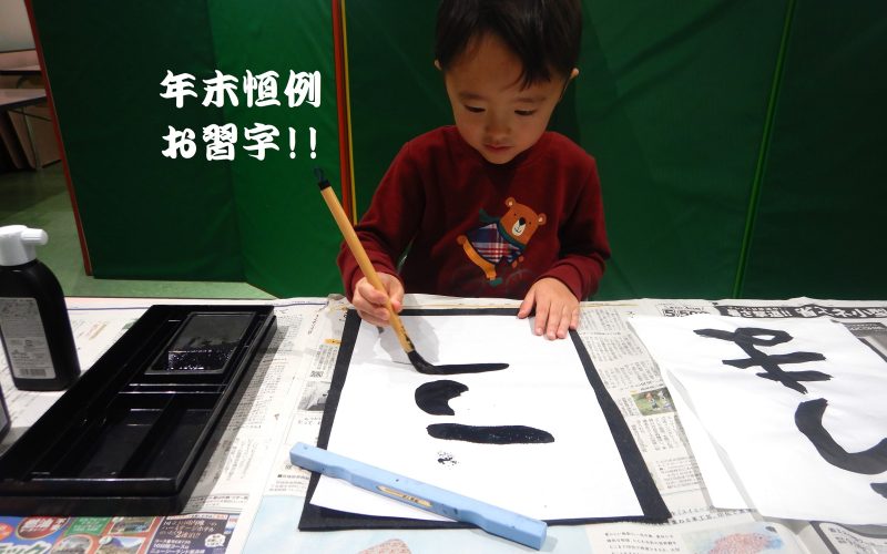 気が付けば、今年もあと2週間!! クリスマスの次はもうお正月 こどもたちにとって楽しいイベントが続きます。カスタッチでは4.5歳児クラスが年末にお習字で来年の干支を書きます。5歳児クラスは漢字、4歳児クラスはひらがなに挑戦です。干支によって難易度もかわりますが、とにかく挑戦!(^-^)筆の感触、墨や墨汁の匂い、薄い半紙、心を落ち着かせて書くこと・・・新鮮な体験です。子どもたちの書いた字は、上手い以上に味が出ます。大人には書けない書体!面白いことに、字にそれぞれの子どもらしさ(慎重、大胆、真面目、ひょうきん、せっかち気味 などなどいろいろ。。。(^-^))が出るので職員も感心して見ています。