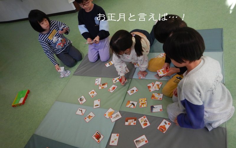 遅ればせながら新年のご挨拶を申し上げます🎍 昨日が2026年最初の登園日で、2歳児以上のクラスは汁守神社に初詣に行ってきました。今日はお正月遊び!!お正月と言えば・・・カルタ!福笑い!羽根つき!この3種の他に、達磨落としと輪投げをセッティングしました。お友だちと一緒になってお腹を抱えて笑ったり、競って張り合ったり・・・こんなふうに目の前にいる人と直接コミュニケーションをとって楽しむのはとても大切なことだと思います。子どもたちが楽しめる遊びはネットのゲームだけではありません♪ぜひ、ご家族でもお楽しみください。福笑いは大人でも大笑いしてしまいますよ(^-^) 本年もよろしくお願いいたします!!
