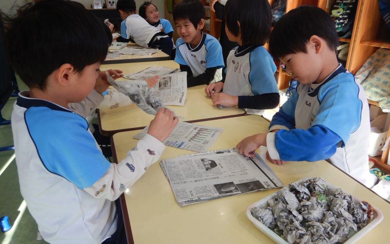 カスタッチプラザとは?…全クラスで開催する「お店屋さんごっこ」です!各クラスでやりたいお店を決め、品物は子どもたちが作ります。看板も作り、当日は交代で店員になりお客さんの対応をします。品物からお店の名前まで子どもたちのアイデアが詰まっているんです。幼児クラスではそれぞれのクラスで話し合いを行い、お店も決まったようです。写真の年長組も品物製造真最中★60人分の品物なので、、、年長組が丸めている新聞紙、ザっと400個近く作るようです。子どもたちは自分たちで決めたものということもあり、お友だちが喜ぶ姿を考えて意欲的に取り組んでいます♪ 今年はどんなお店が並ぶのかな~?