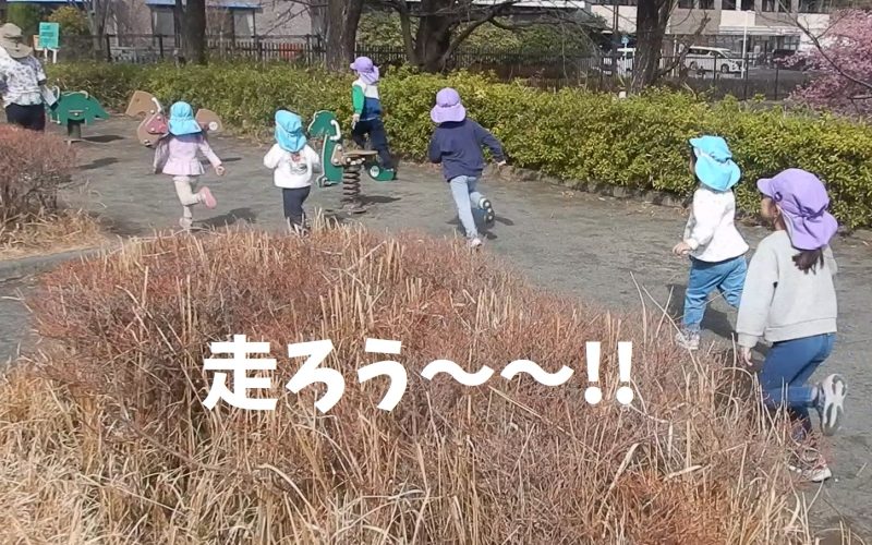 今日は4歳児クラス&2歳児クラス手をつないで一緒に公園に来ました!4歳児クラスはあと1ヶ月で年長組に進級ですね。憧れのおとうばん先生や給食紹介ができる日ももうすぐです♪2歳児クラスのお友だちを優しくリードしてくれました。公園では一緒にかけっこ!大きいお友だちの勢いに引っ張られて、負けじと走る2歳児クラスもパワー全開!!!! 2歳児クラスも4月からは幼児クラスに仲間入りです(^_-)-☆